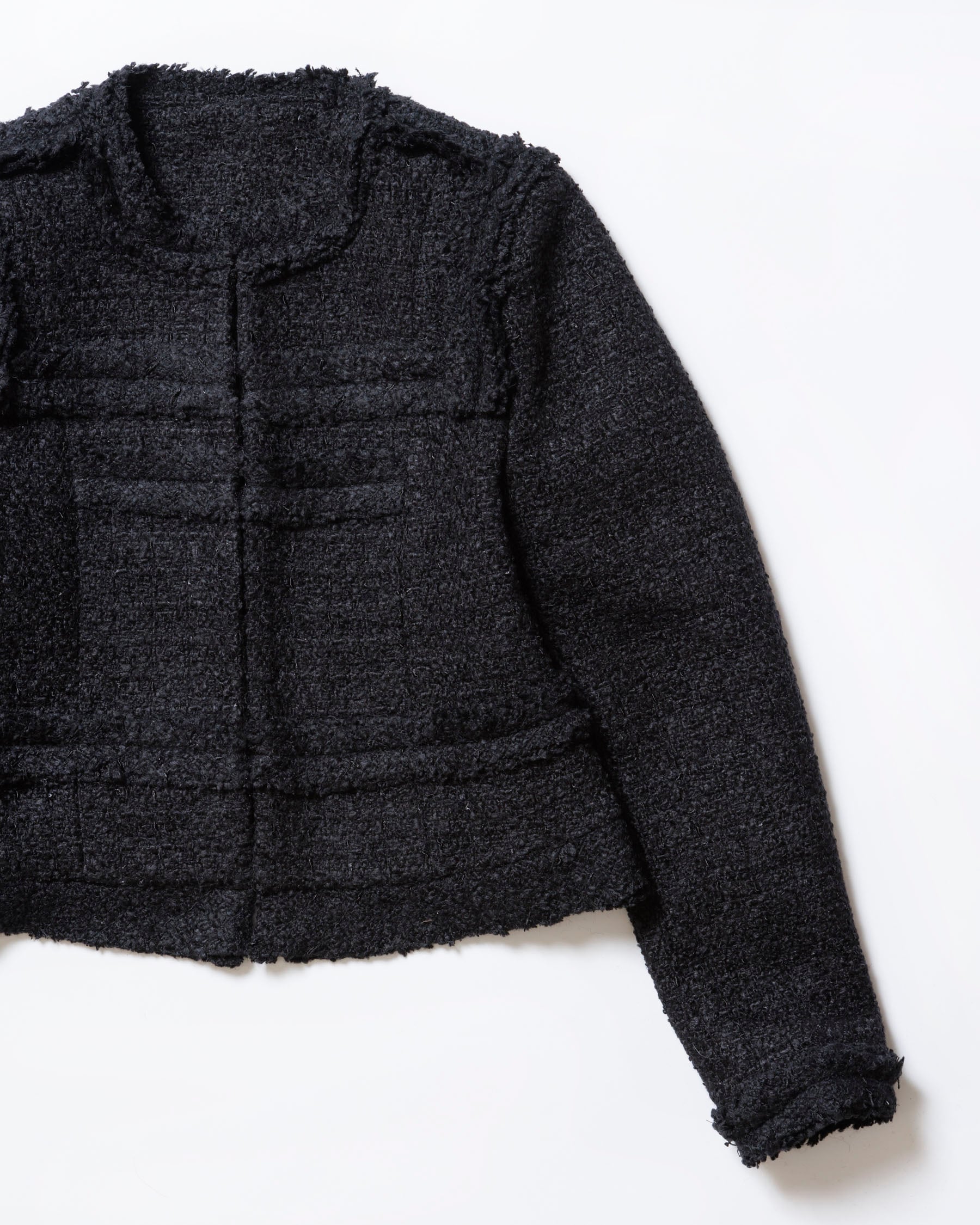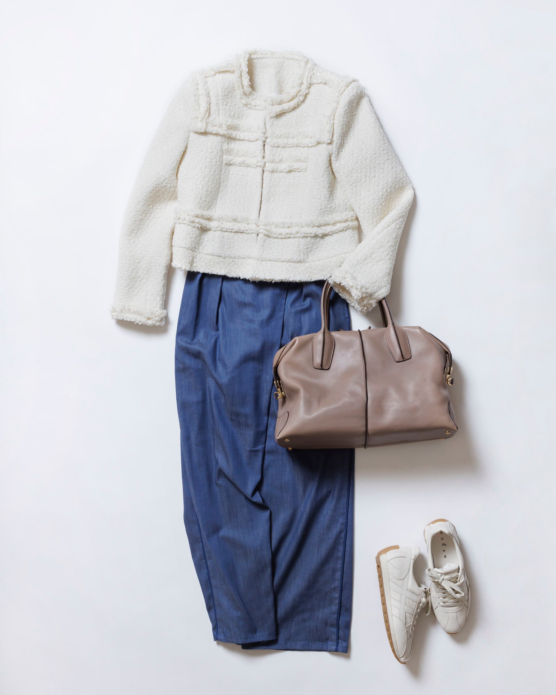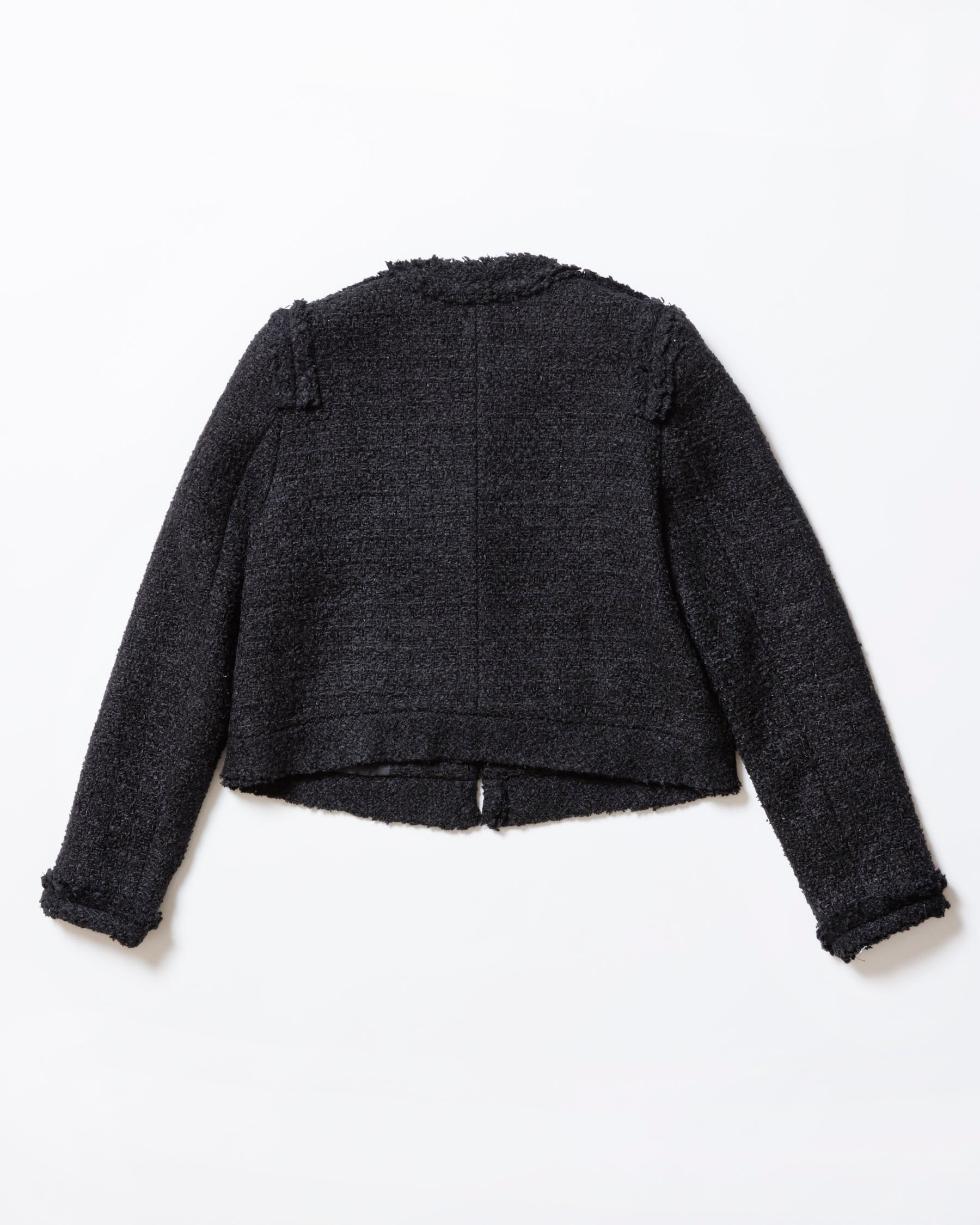 フリンジ使いが程よく抜け感をプラスし、ツイード特有の硬さを感じにくい一着です。
