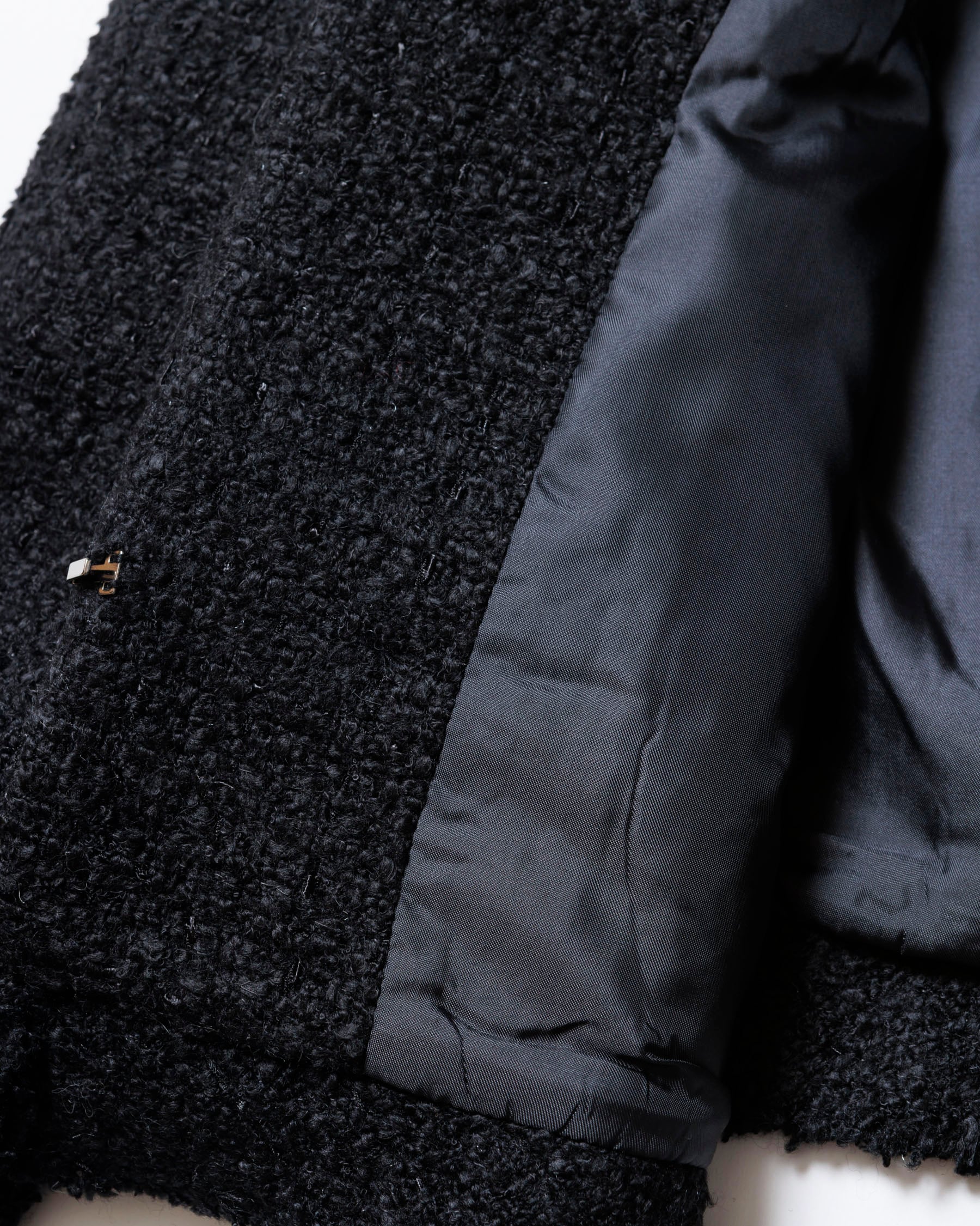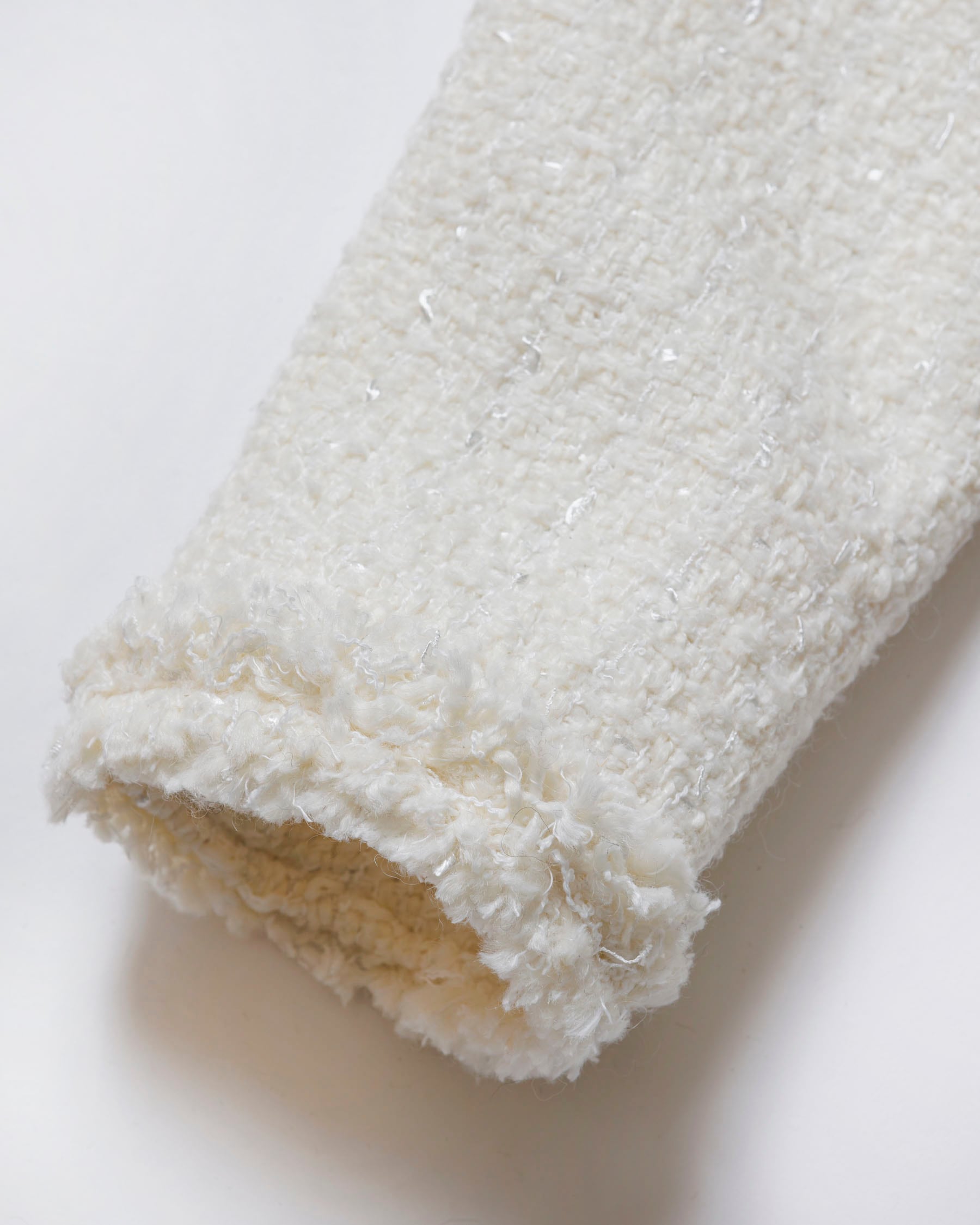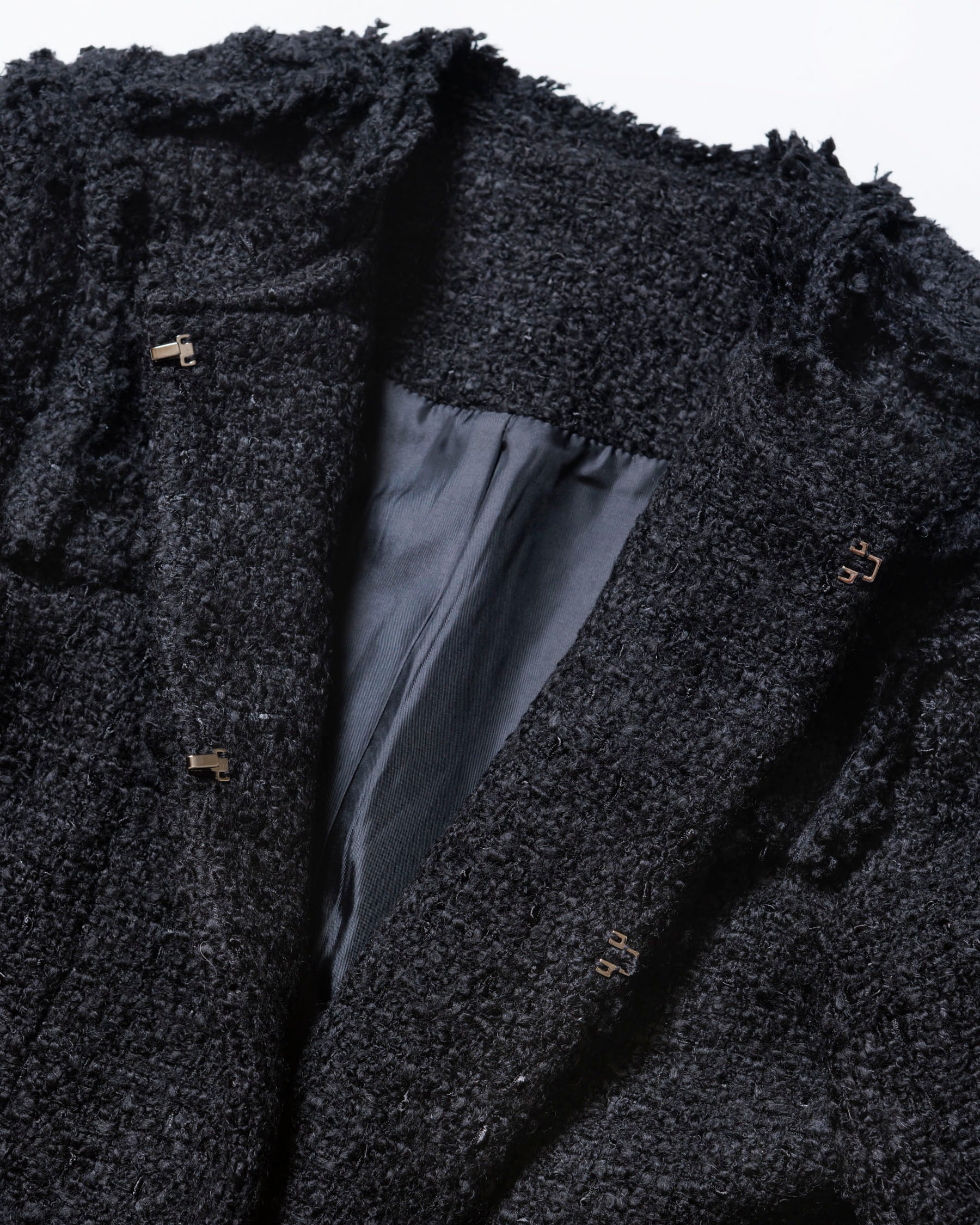 表情のあるツイード素材を使用しながら、シルエットはコンパクトで軽やかに。