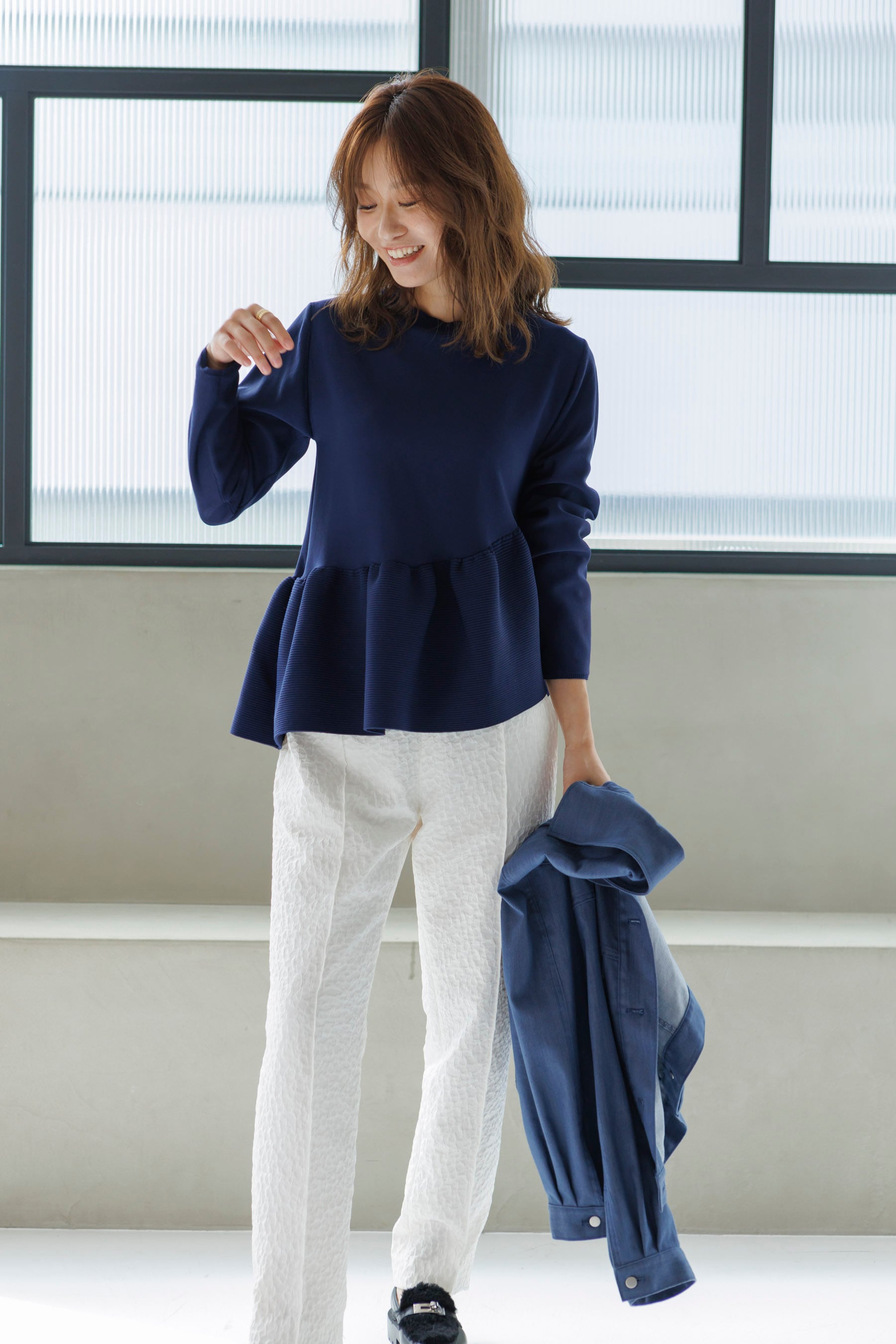 膨れジャガードで甘すぎない大人のテーパードパンツ♡