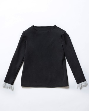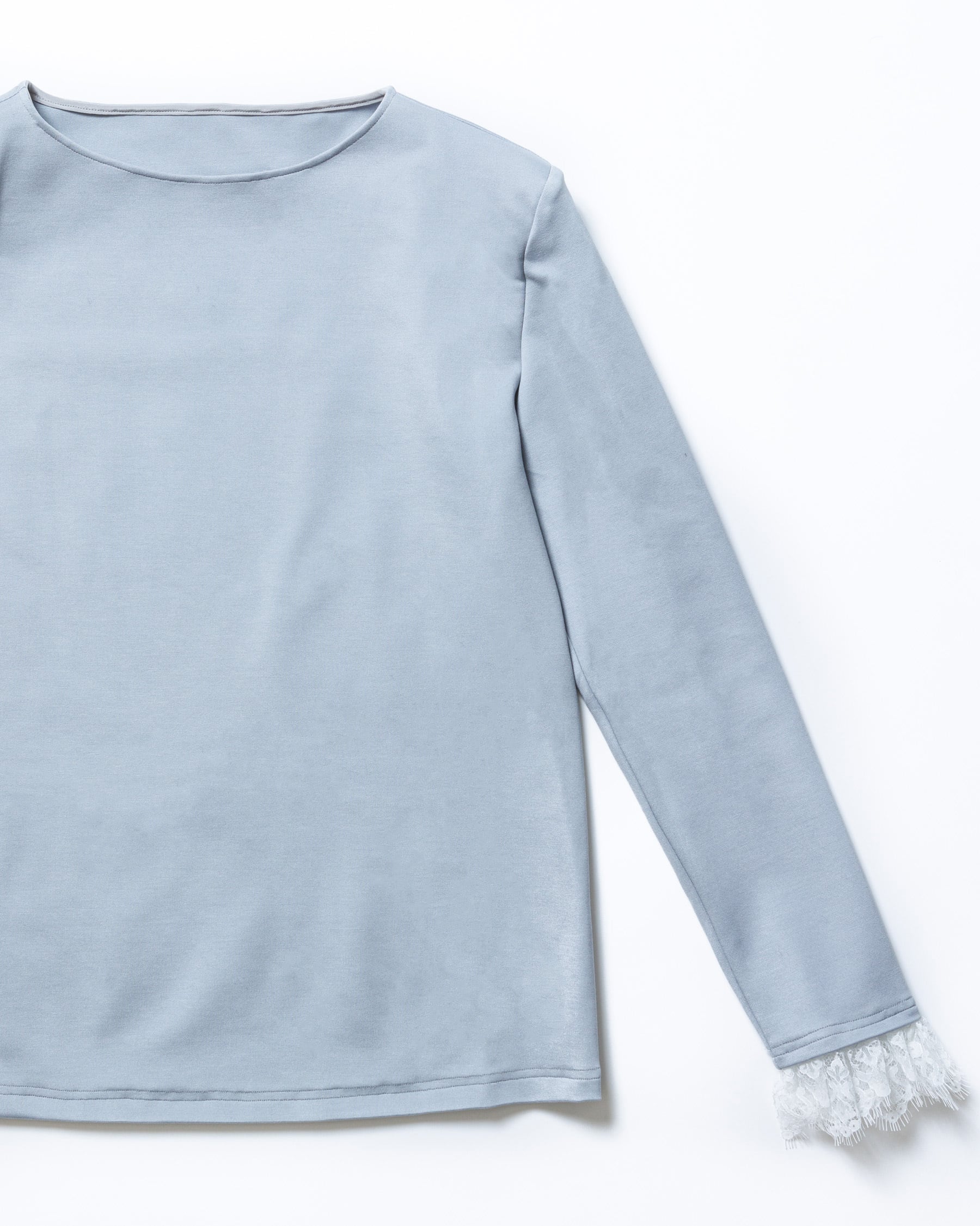 しなやかなレース素材を使用し、カフのデザインがアクセントになるトップス。