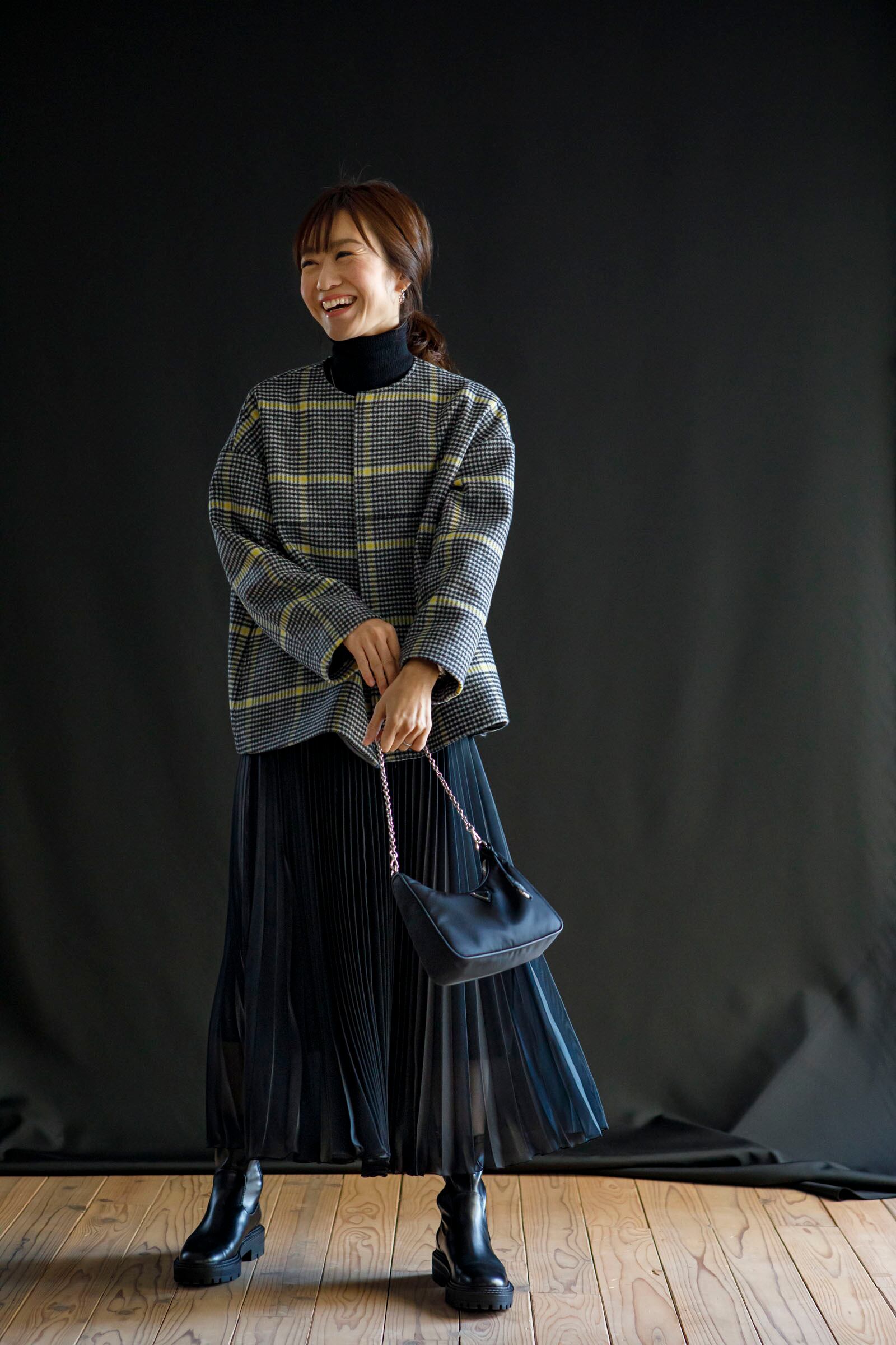 スカートからパンツ、ロング丈のボトムスでも重たくならずに着こなせます。