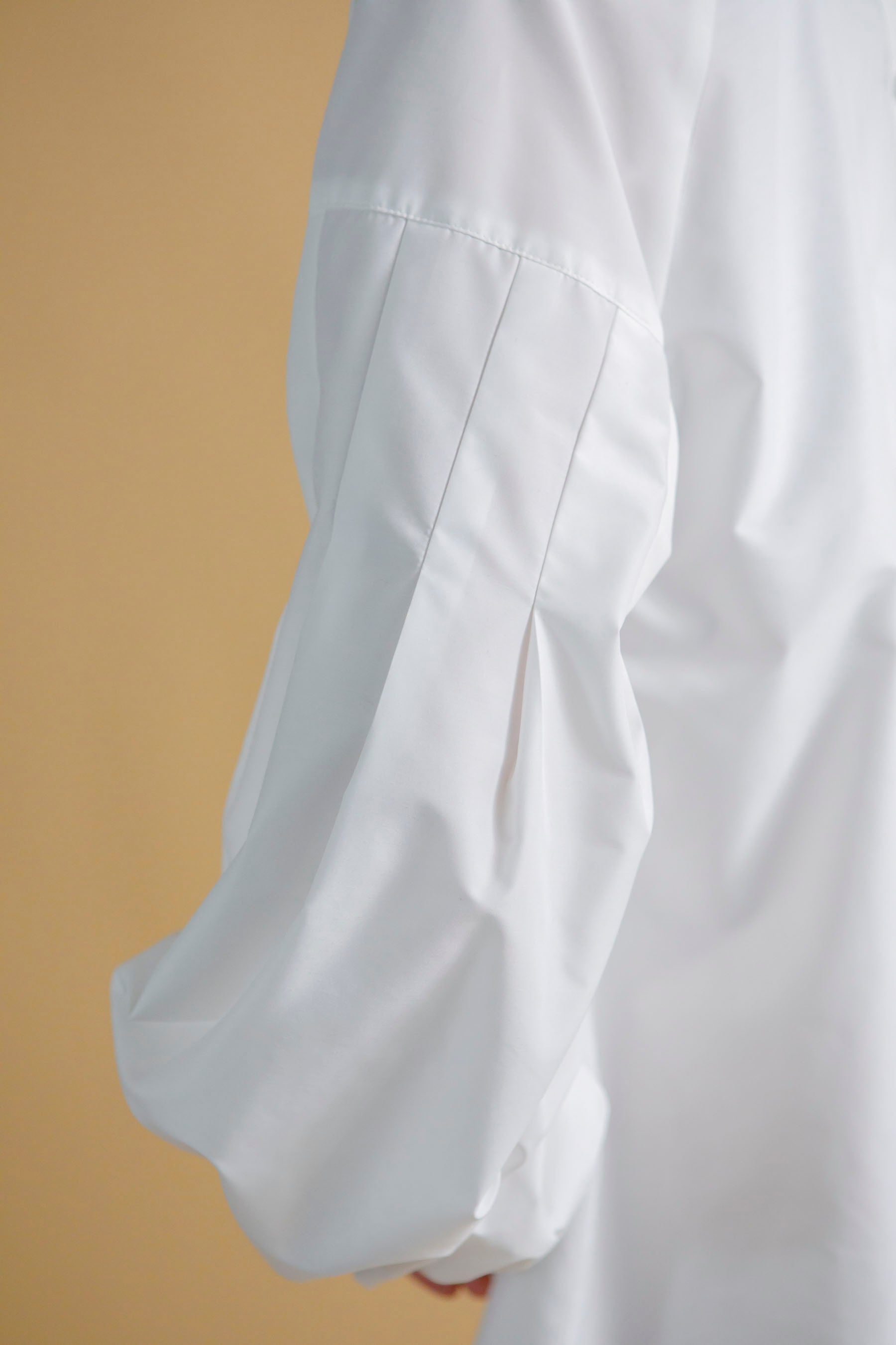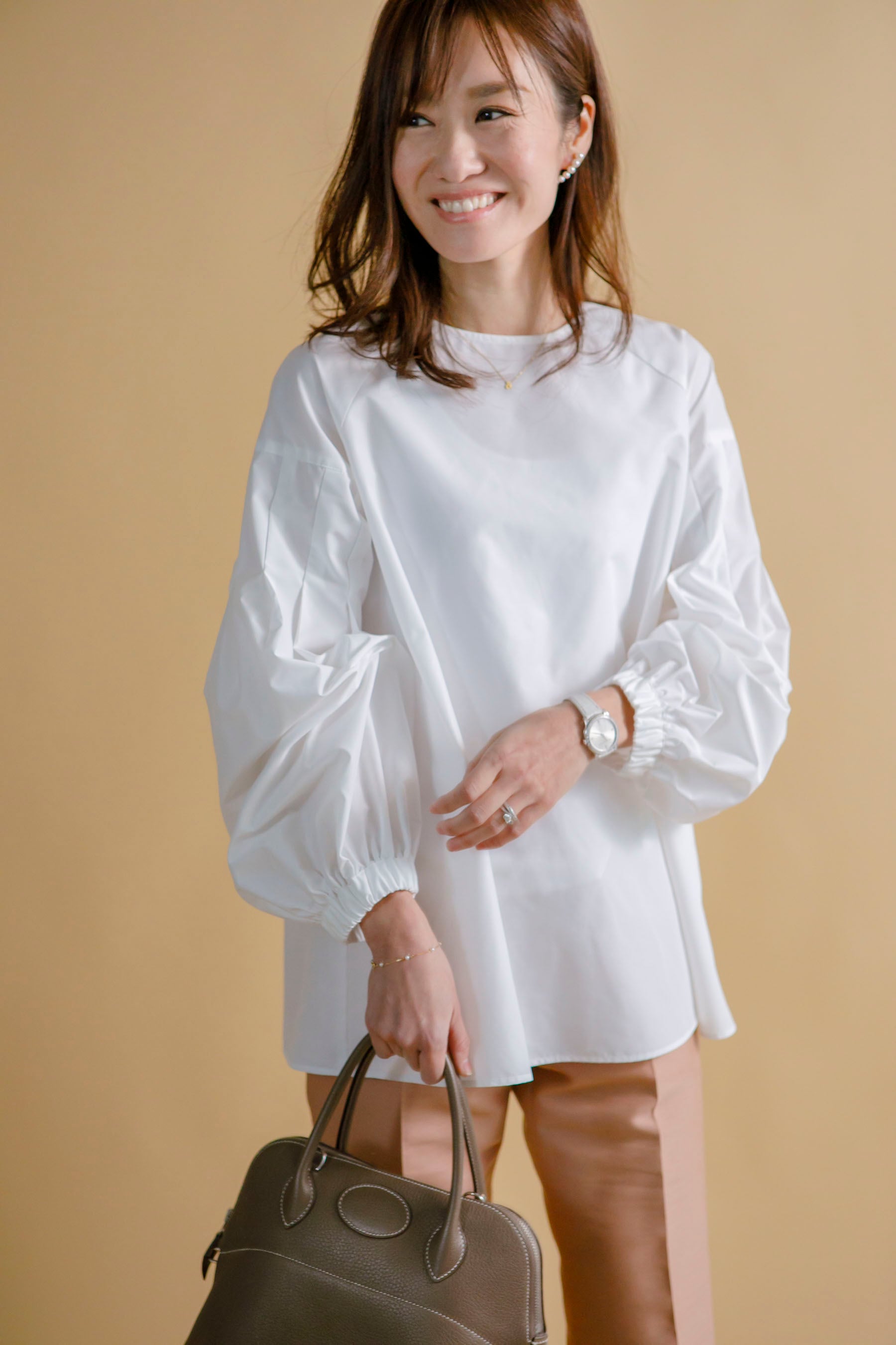 ふんわりとしたボリュームスリーブが華やかさをアップ。