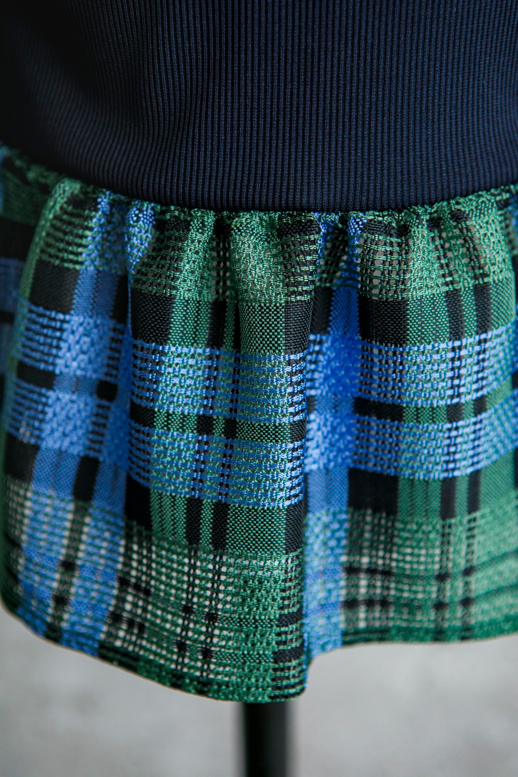 異素材フリルのチェック柄が魅力的なキッズトップス。ふんわりと広がるフレアデザインが女の子らしいシルエットを叶えてくれる1枚。