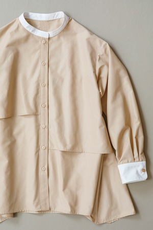 スタンドの襟が切り替えで可愛いクレリックシャツ。