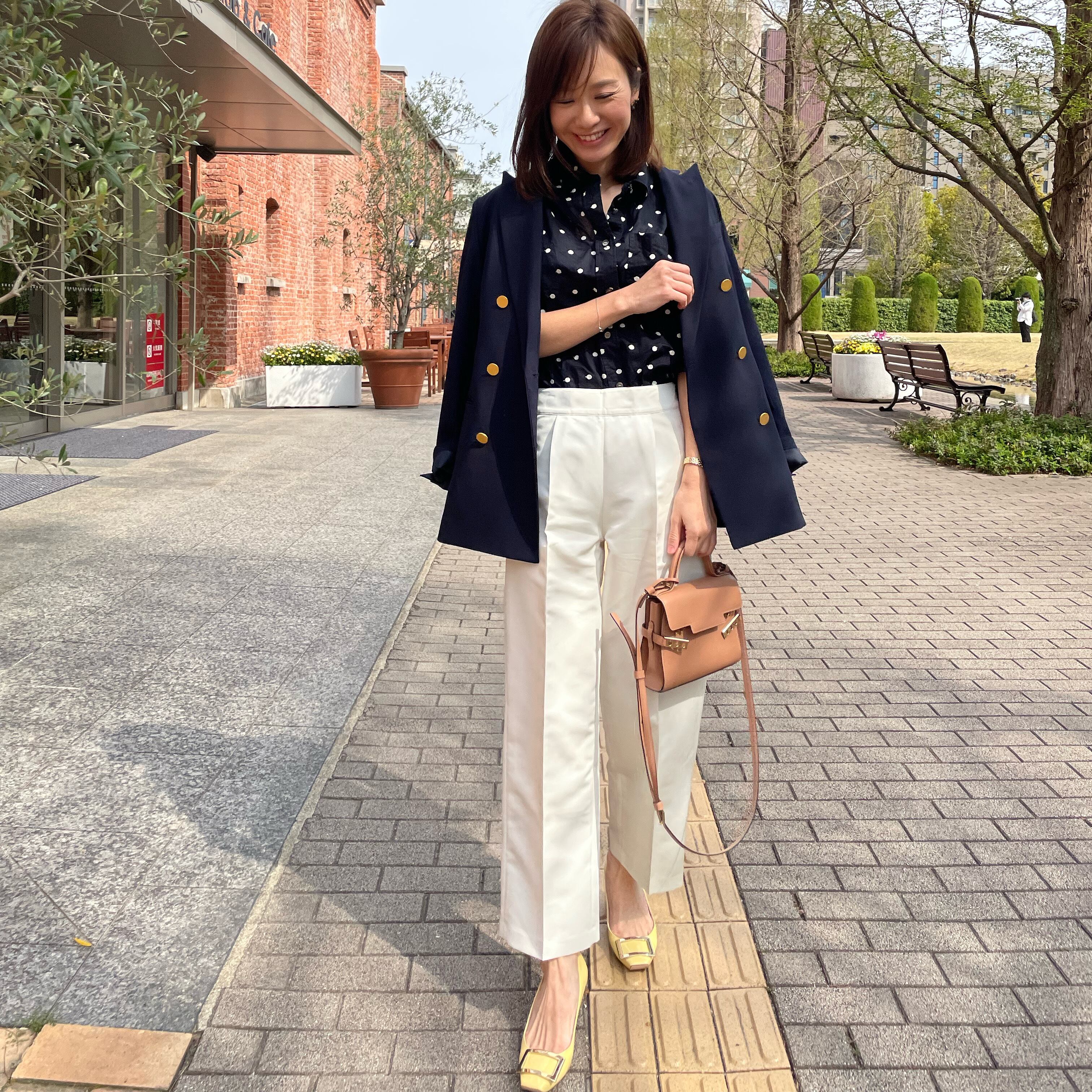 ボーダートップスやTシャツなどカジュアルなトップスを合わせても、小物合わせによって上品にも魅せてくれるパンツです。