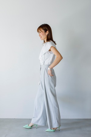 タックがたっぷり入ったワイドシルエットに、後ろウェスト部分はゴム仕様なので着心地も抜群です。