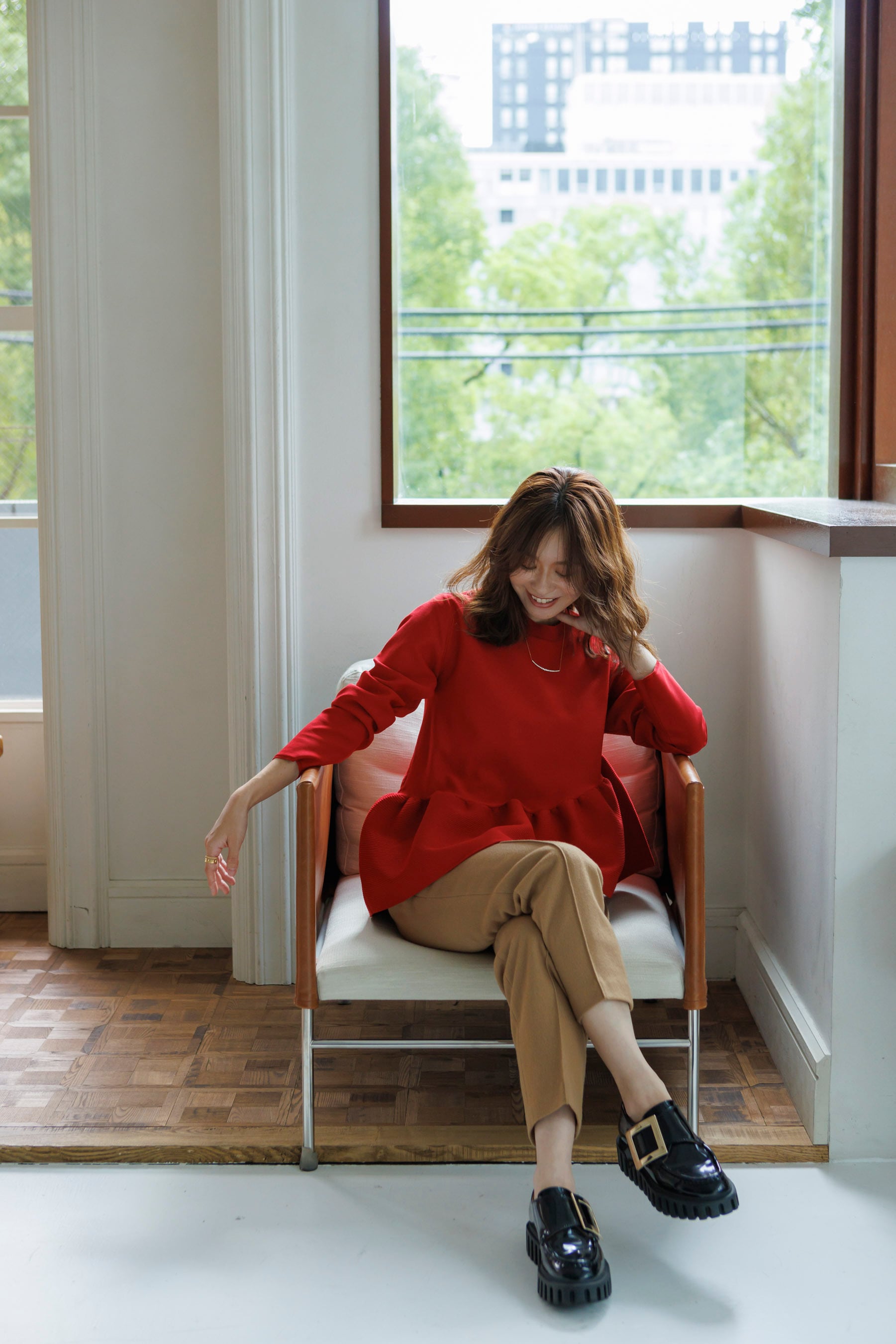 少し短めの丈感がスニーカーやローファーに合わせてももたつかず、靴下をチラッとみせて冬のコーデを楽しめます。ショートブーツに合わせても可愛い♪