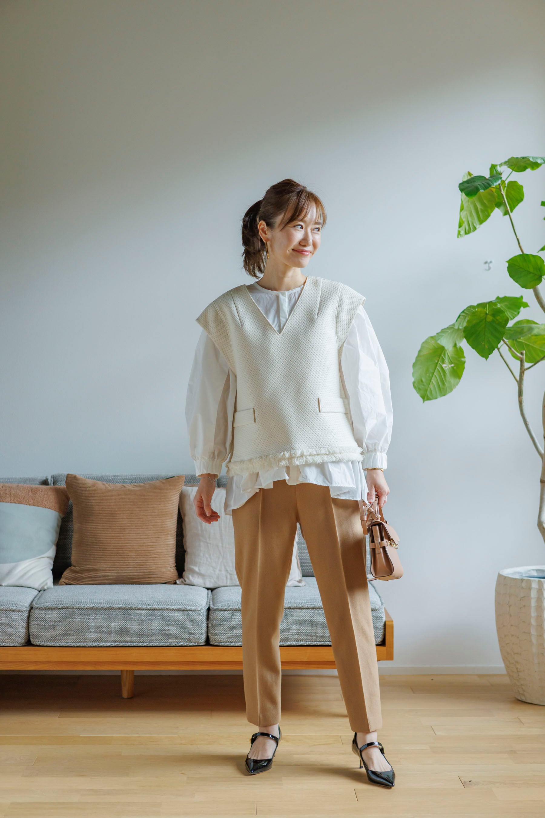 シワになりにくく、ウエストゴムでストレスフリー◎