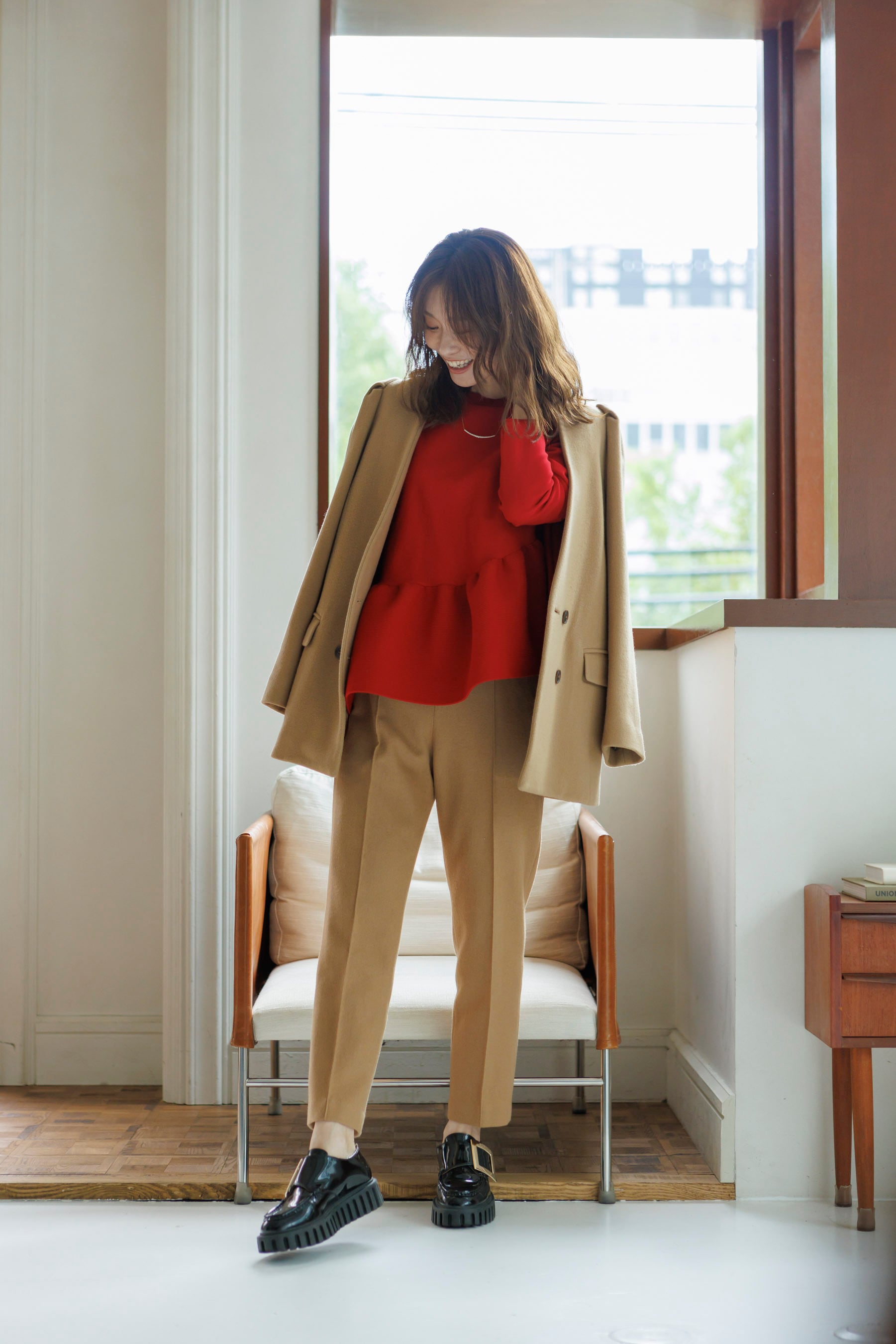 スリム過ぎない太さ、ウエストインした時に美脚にみせてくれるやや深めの股上、どんな靴にも合う丈、ウール素材で暖かく、裏地が付いているので履き心地も抜群。