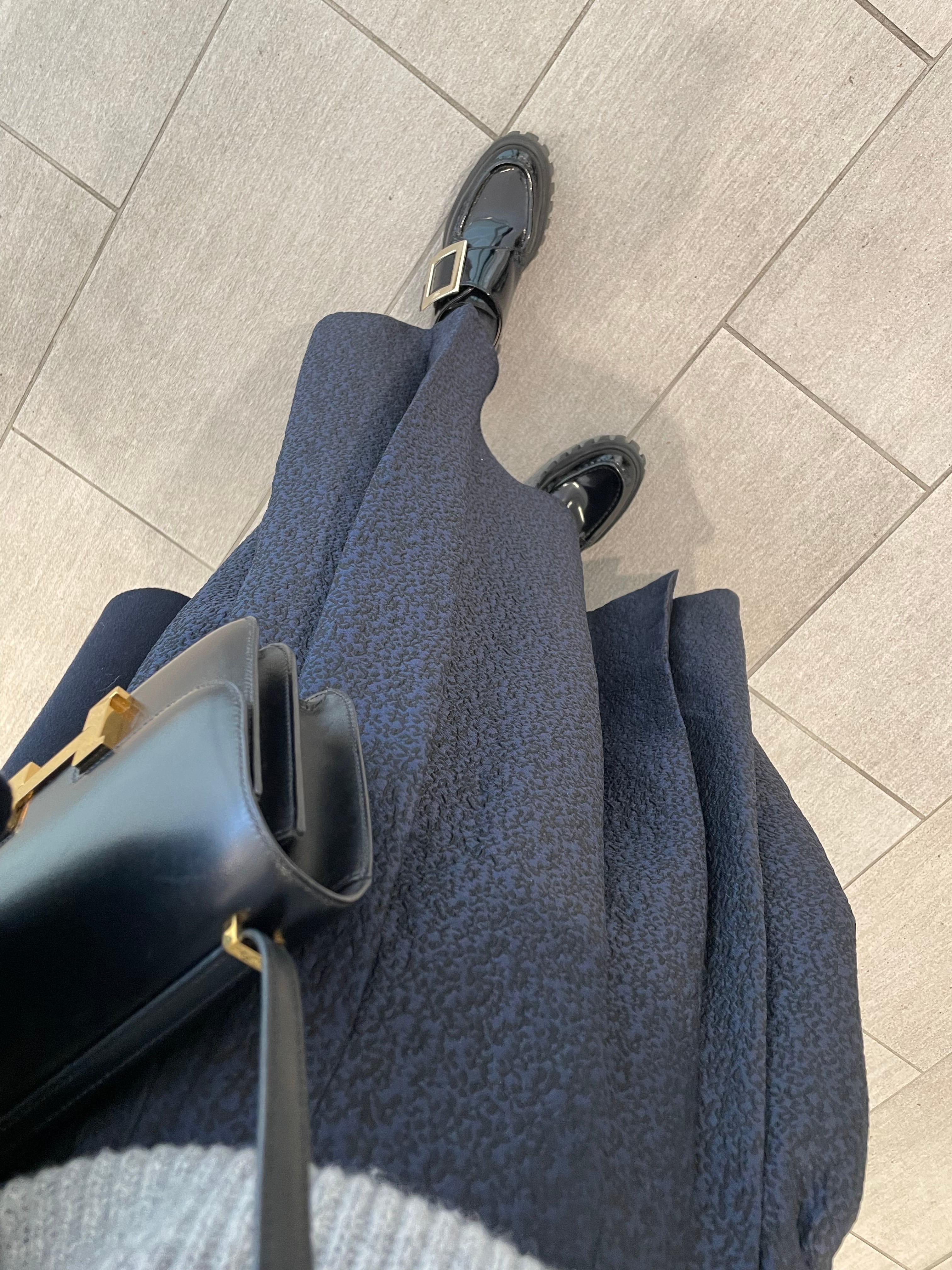 両サイドの大きめのポケットがポイントになり、合わせるトップスやシューズによってエレガントにもカジュアルにもお召し頂けます。