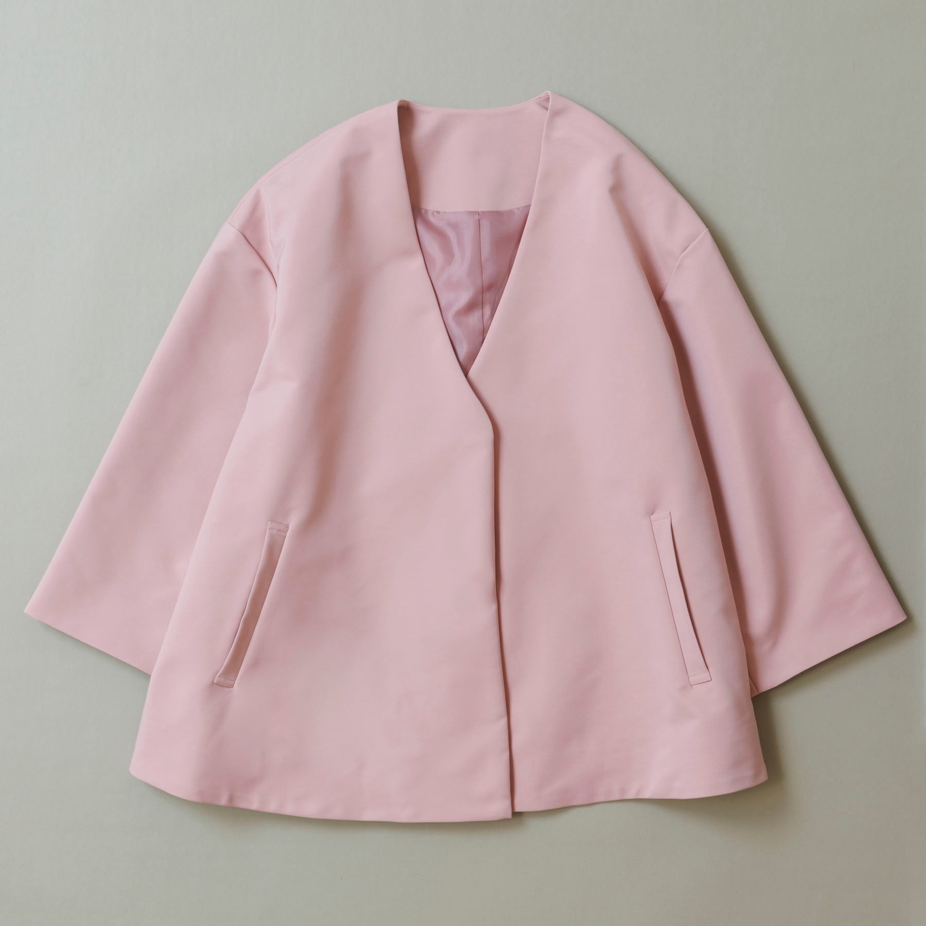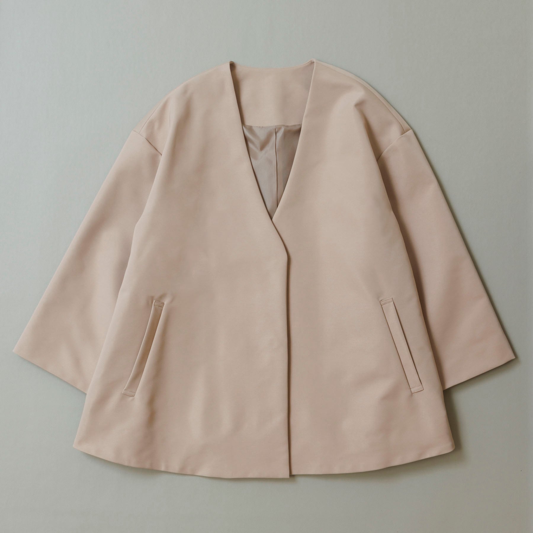 首回りがすっきりとしたデザインなので、ボウタイやデザインブラウス、タートルネックと合わせても◎ゆとりのあるデザインで、肌寒い春先からもインナーを調節すればご着用いただけます。