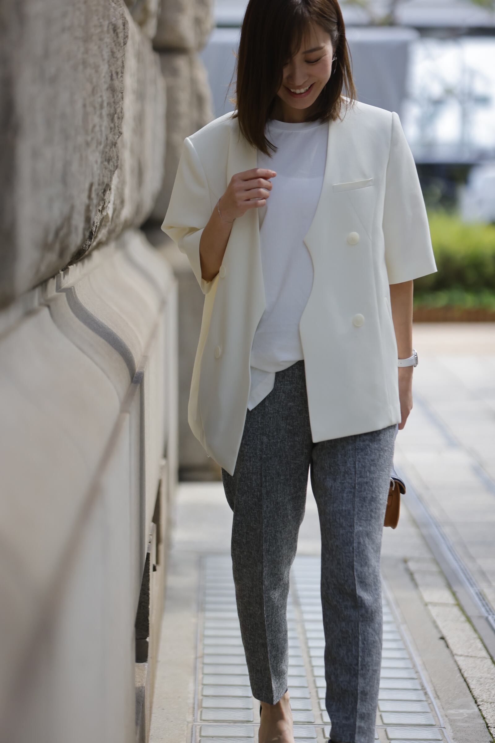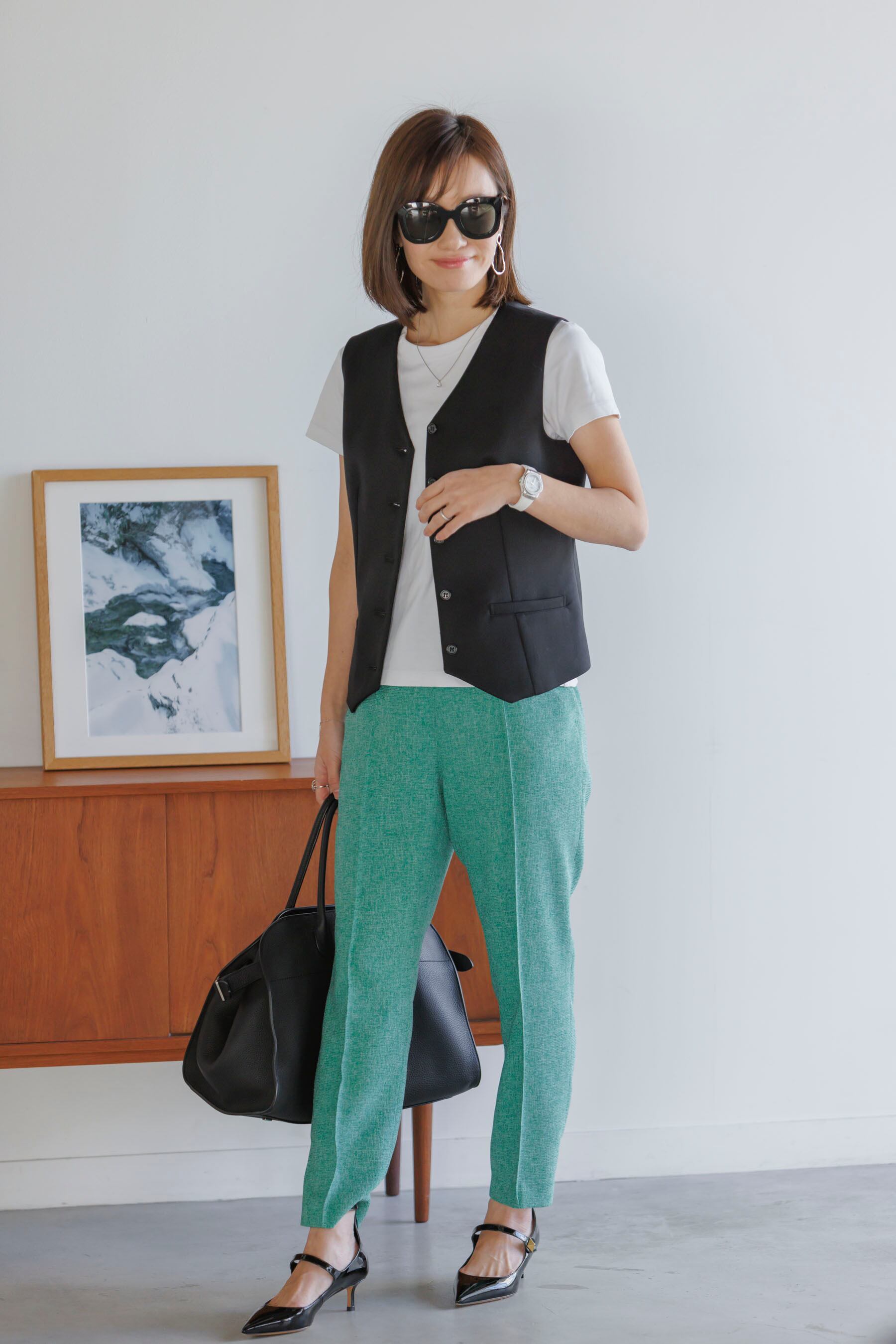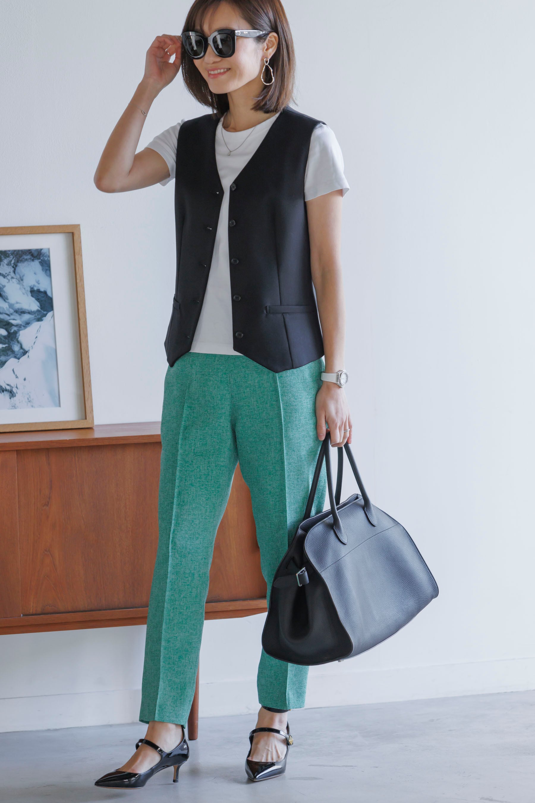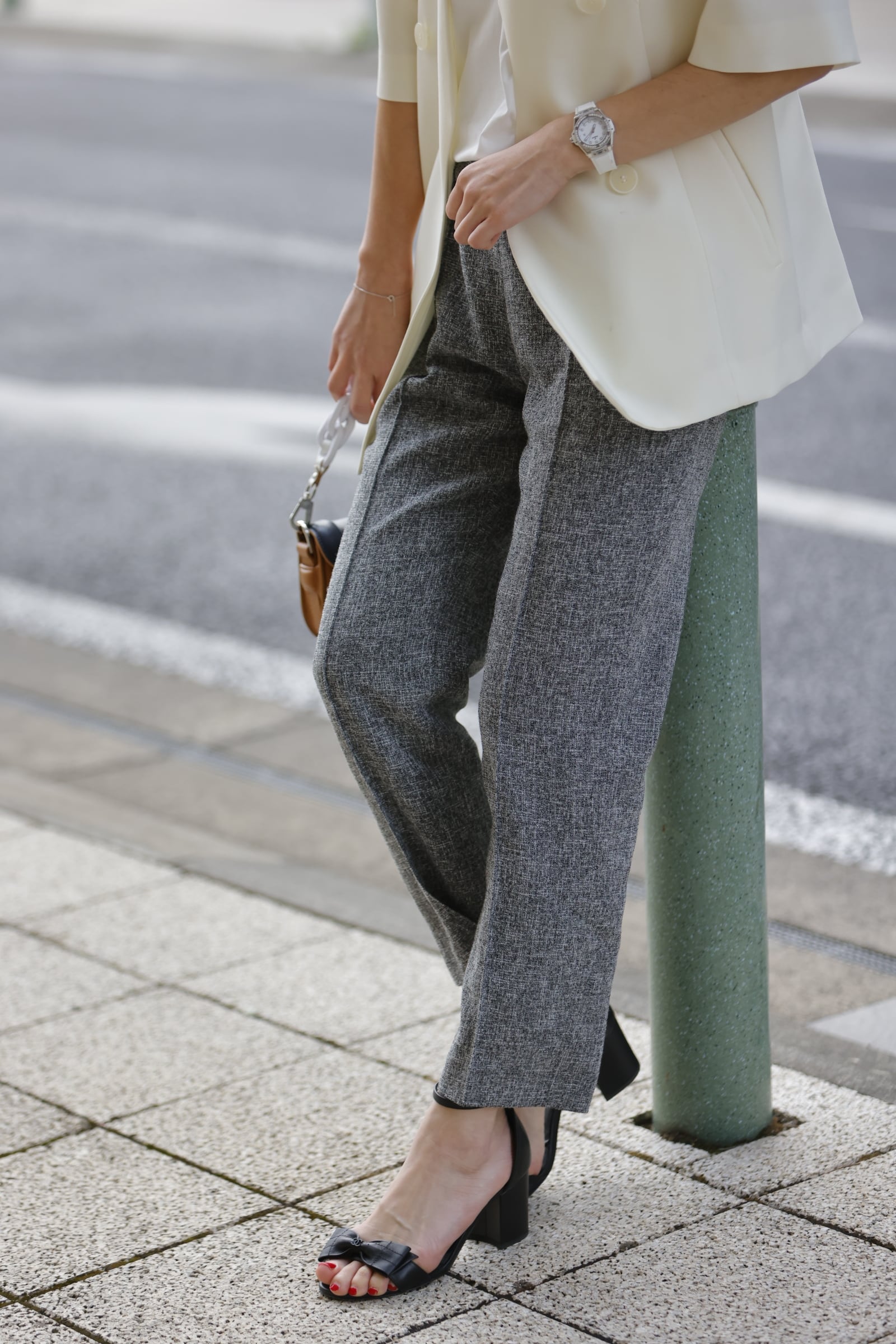 ジャケット、ブラウスにも。どんなトップスにも合わせやすい定番のテーパードパンツ。